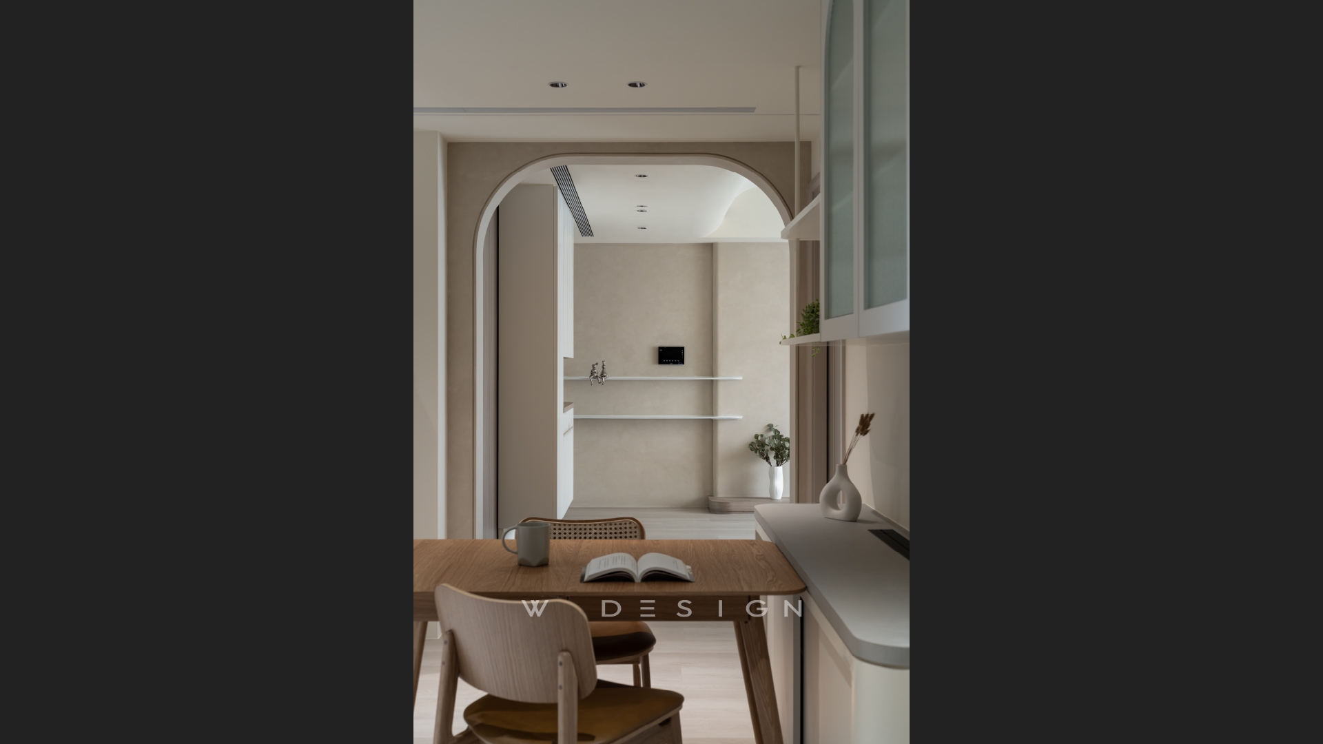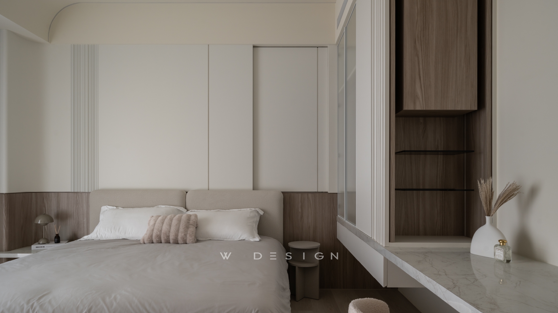 以溫潤奶油白與淺木色為主調,營造柔和舒心的氛圍。圓弧轉角與間接燈光帶出細膩層次,讓整體更顯溫柔與俐落。設計上融合玄關、客廳與臥室動線,提升生活的流動感與收納機能,是一處兼具美感與實用的現代居所。