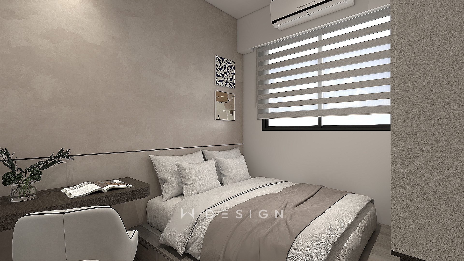 空間以灰階為基調,搭配淺木地板與米白家具,營造靜謐沉穩的現代氛圍。石紋電視牆與玻璃隔間延伸視覺通透感,提升空間開闊度。開放式格局整合客廳、餐廚與書房機能,動線流暢,兼顧日常生活與待客需求。