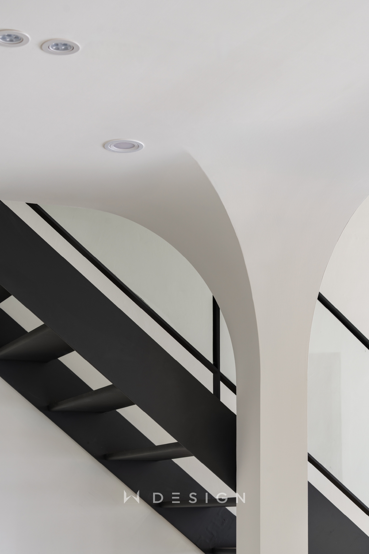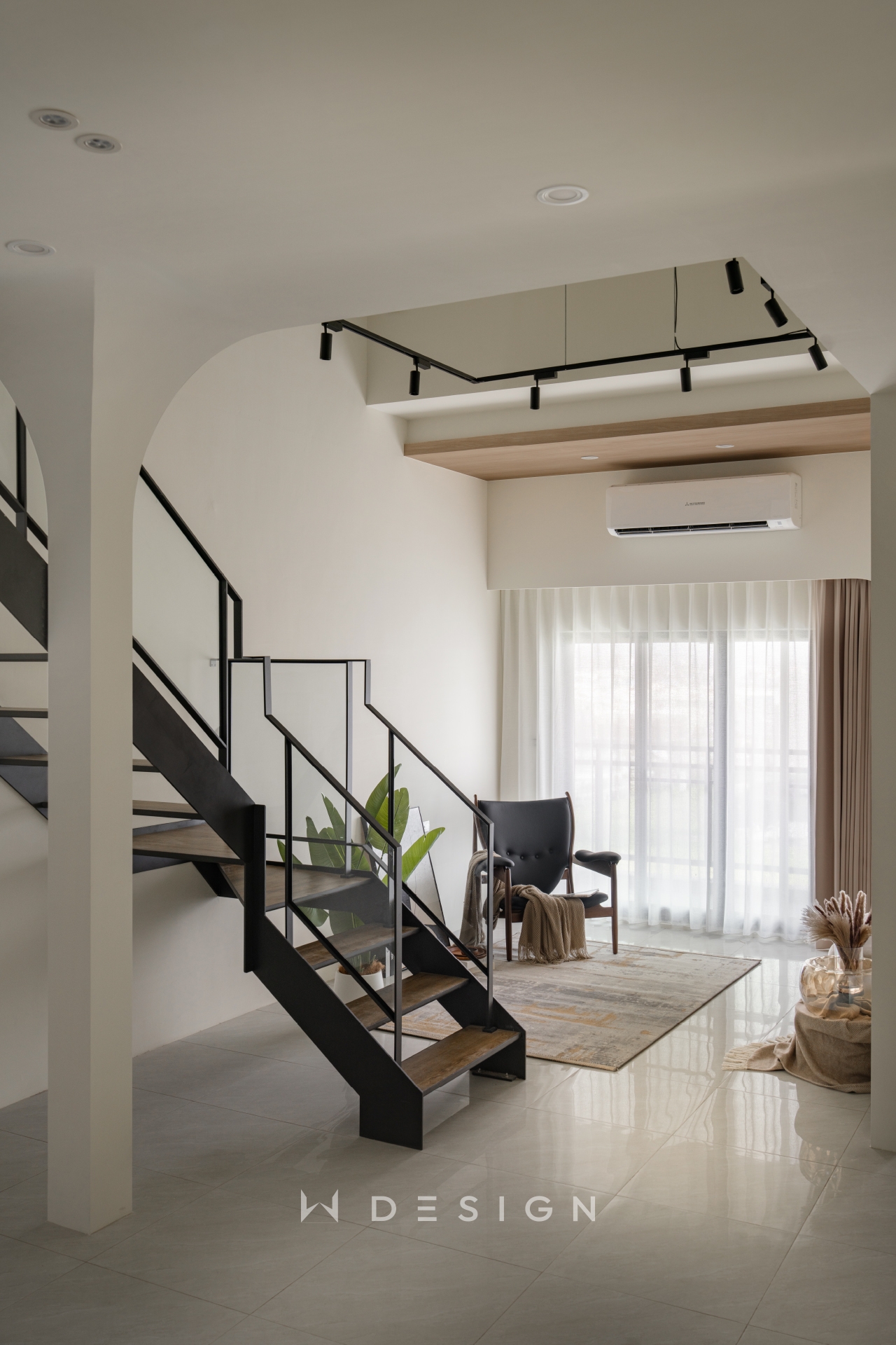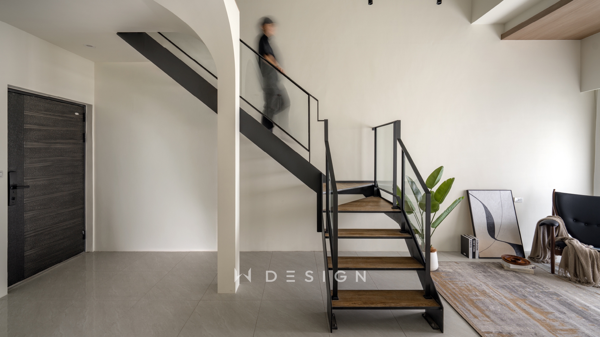 鋼構的骨架,勾勒出空間的層次,弧形的轉折,柔化了結構的銳度,鐵件、木質與留白之間,形塑出一種靜謐而堅定的節奏,日式簡約與工業語彙的平衡