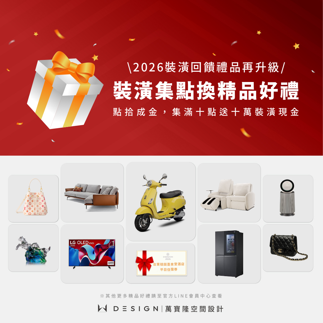 - 完工入厝禮:裝潢金紅利積點回饋,可兌換居家精品(詳見)